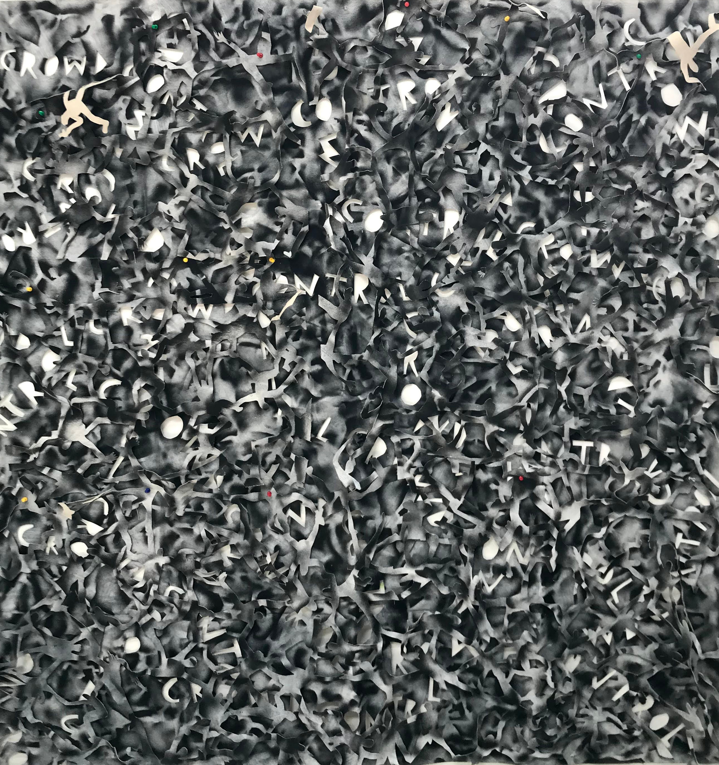 My studio practice is essentially a chaotic organism. To me, it's a sanctuary where I can go to create big messes and try and channel it all into weirdly satisfying results. I paint with acrylics and inks, or anything that dries quickly. I like to cut into the things i'm working on and move things around and glue it back together in different arrangements. Each project turns into a lengthy undertaking. I have a rule to try and not waste any material or substance that comes into/out of my studio. I keep all my scraps and never completely destroy anything. More often than not, it's the scraps/detritus from past projects that spark the next project. It just keeps feeding itself.